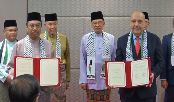 Ia disempurnakan Ketua Setiausaha Kementerian Pelaburan,Perdagangan dan Industri (MITI),Datuk Hairil Yahri Yaacob bagi pihak Malaysia dan Duta Besar Palestin ke Malaysia,Walid Abu Ali sambil
