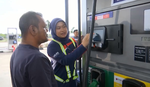 Pekerja stesen minyak turut membantu memberi penerangan mengenai prosedur pembelian menggunakan kad pengenalan serta baki kuota 300 liter yang dinikmati pada resit pembelian.