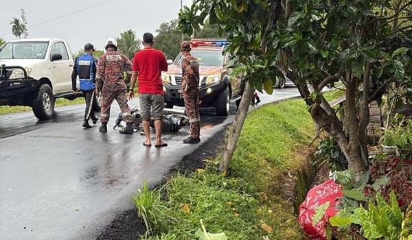 "Setibanya mangsa di tempat kejadian,motosikal terbabit dipercayai hilang kawalan dan masuk ke laluan utama lori berkenaan.