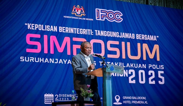 Datuk Seri Saifuddin ketika berucap dalam Simposium Suruhanjaya Bebas Tatakelakuan Polis (IPCC) 2025 di Kuala Lumpur