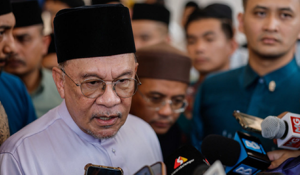 Perdana Menteri,Datuk Seri Anwar Ibrahim bercakap kepada pemberita selepas menunaikan solat Jumaat di Masjid Tengku Ampuan Jemaah,di sini / Foto BERNAMA